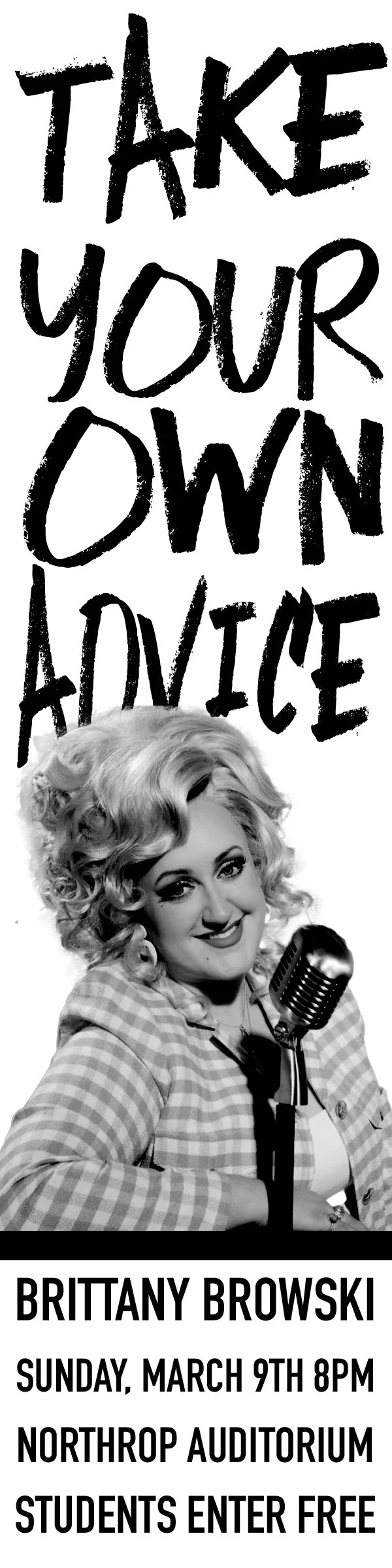 As part of my Media Design class, I created a campaign for comedian and online personality Brittany Browski for a hypothetical tour called Taking Your Own Advice. Brittany is a podcaster and YouTuber, known for her hot takes and blend of relatability and glam.