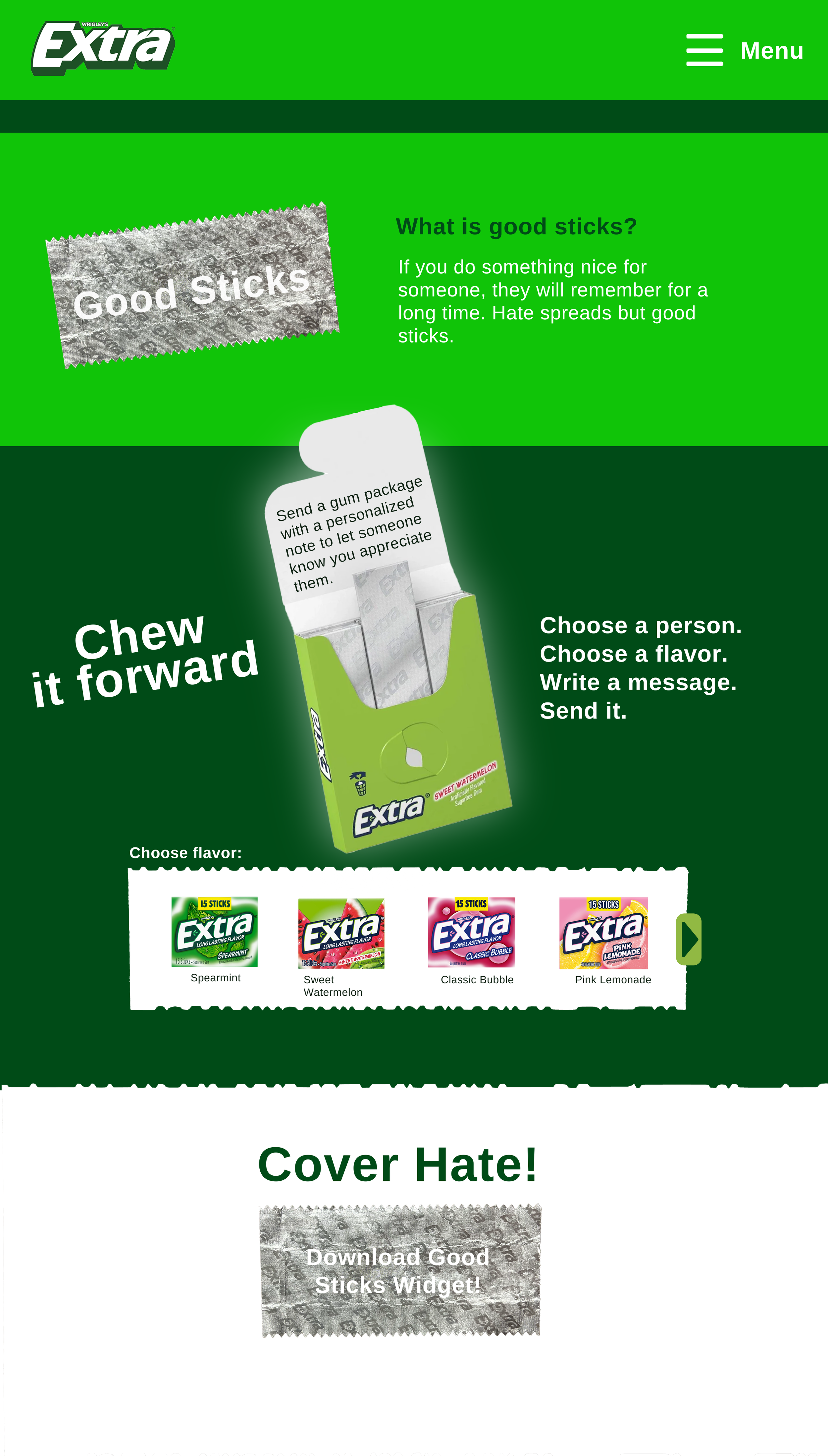 The Good Sticks hub would live on the website Goodsticks.com, where consumers can learn more about how to spread positivity, personalize and purchase gum packages, and download the free wrapper widget all in one place.